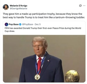 And the saddest part. This is the first award he has ever earned honestly. Because nothing captures the spirit of Donald Trump more perfectly than a participation trophy handed to a man who never understood the game.