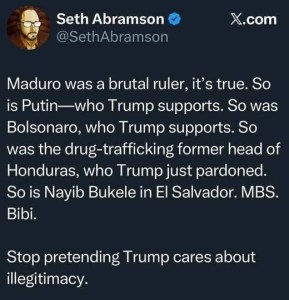 The moment the United States decided it could kidnap one leader and threaten another with a fate “worse than Maduro’s,” it forfeited the moral authority to object when Putin, Xi, or any future strongman does the same. When the next abduction happens and it will, Washington will issue statements, demand accountability, and invoke international law.